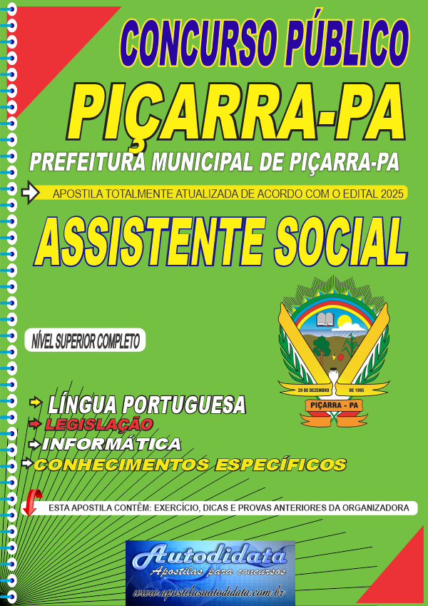 Apostila concurso Prefeitura de Piçarra-PA 2025 Assistente Social, elaborada de acordo com o último Edital, . Este material didático oferece um conteúdo completo, atualizado e focado nas necessidades do concurso.